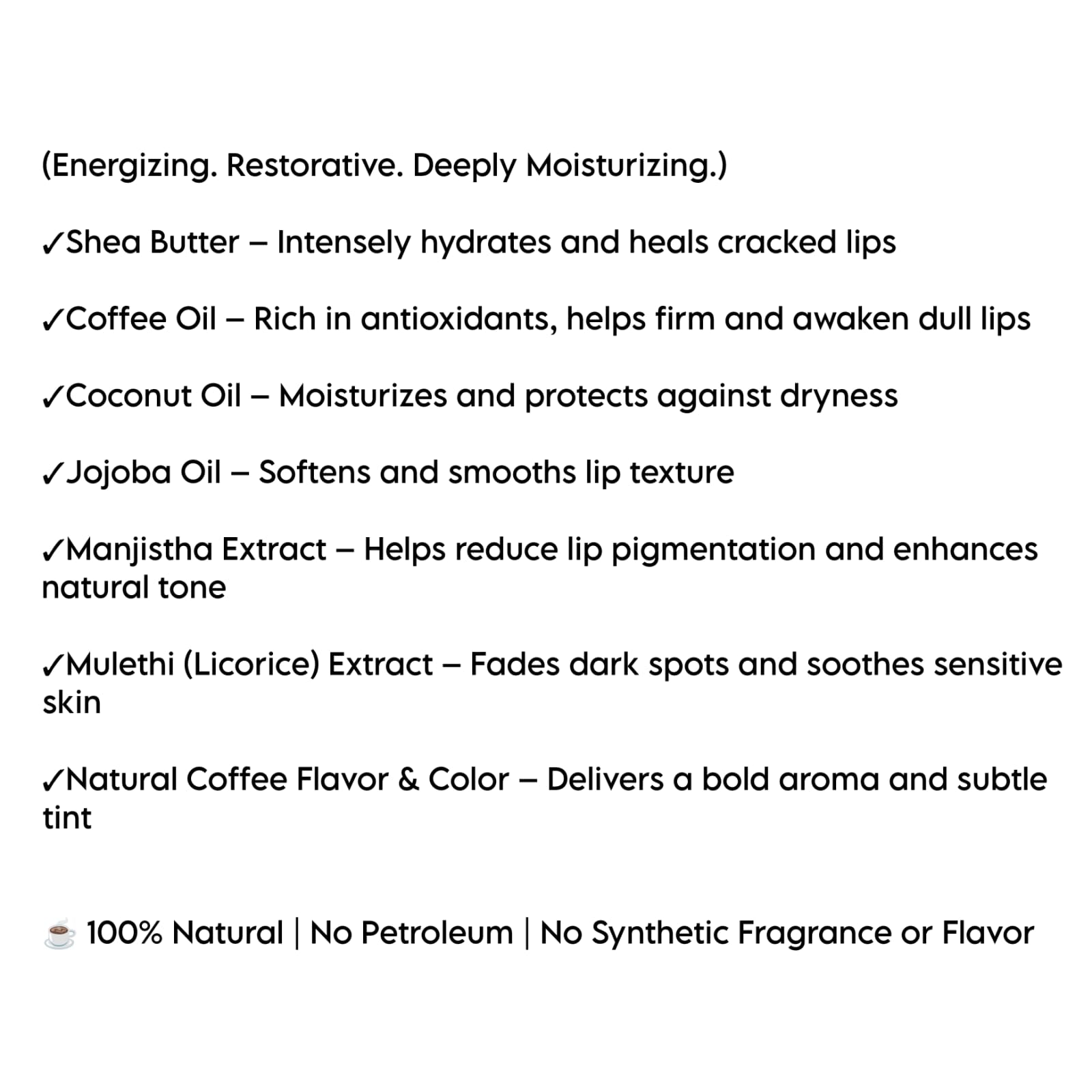 # Coffee lip balm, lip balm for pigmented lips, lip plumper balm, coffee-infused lip care, herbal brightening balm, Ayurvedic gloss balm