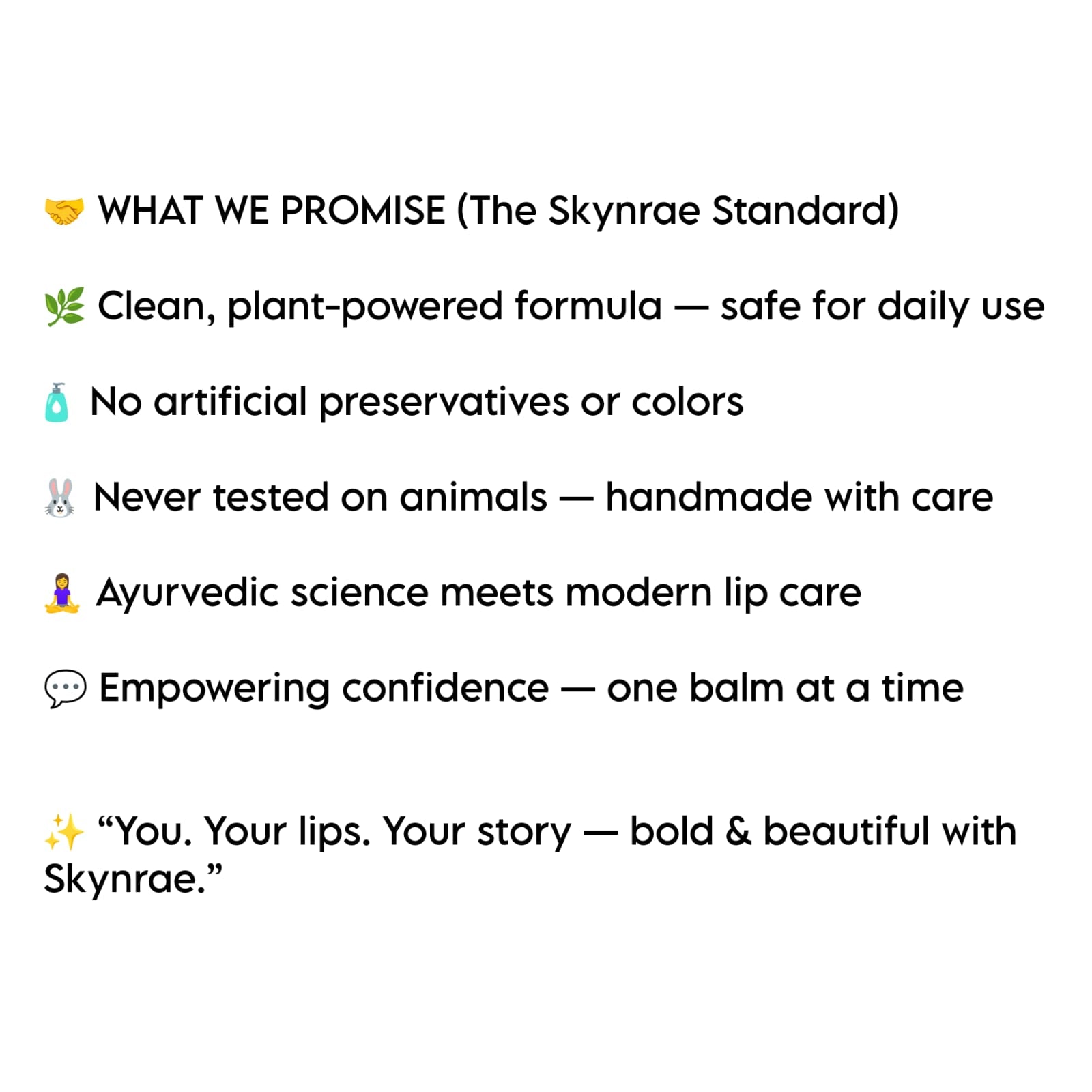 - Raw Shea Butter, Kokum Butter & Cocoa Butter – Deeply moisturize and repair chapped lips
