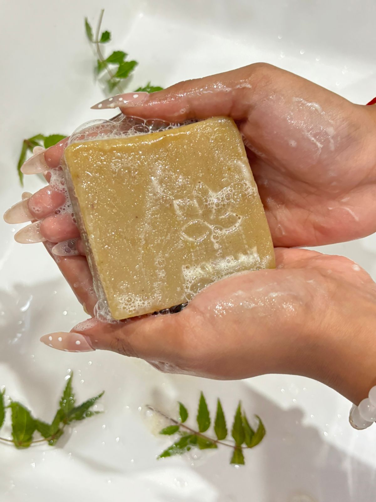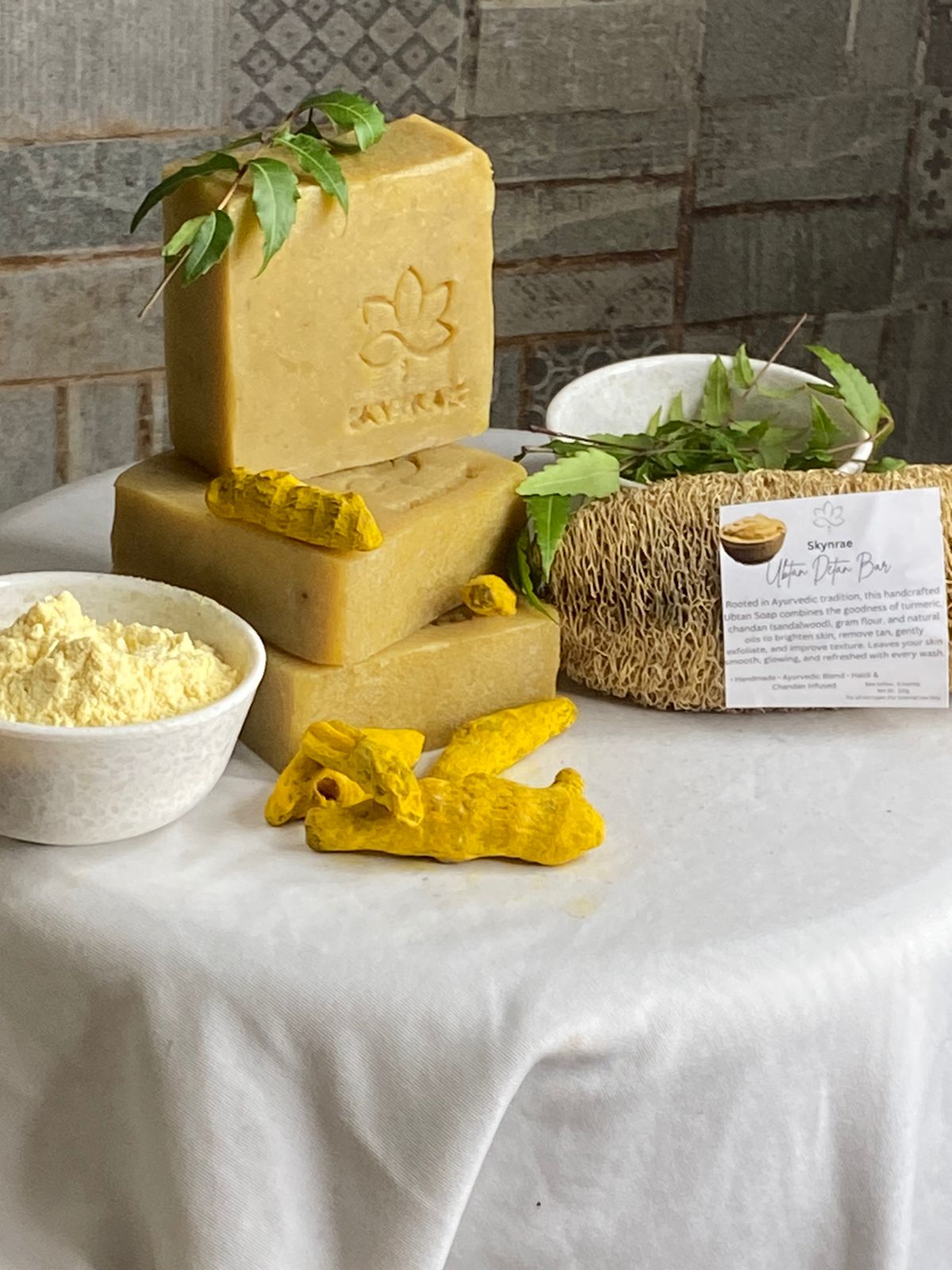 Skynrae Ubtan Soap – Handmade Ayurvedic soap for tan removal & skin glow. With shea butter, manjistha & licorice extract. No chemicals, 100% natural.